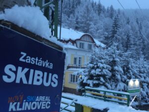 Zastávka Skibusu se nachází přímo před naši chatou a vyveze vás k dolní stanici lanovky Prima Express.